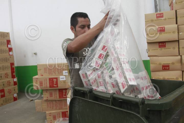 MAZATLÁN, SINALOA, 31JULIO2012.- El Servicio de Administración Tributaria (SAT) lleva a cabo la destrucción de más de 82 millones 800 mil cigarrillos que fueron asegurados en la Aduana del puerto. FOTO: ESPECIAL /CUARTOSCURO.COM