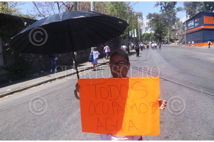 CUERNAVACA, MORELOS, 11MARZO2024.- Una mujer muestra su cartulina con la leyenda "Todos ocupamos agua" en un bloqueo vial que realizan habitantes de la colonia precarista La Estación, en protesta por más de ocho días sin agua potable. Los vecinos acusan que el Sistema de Agua Potable y Alcantarillado de Cuernavaca les cobra el servicio de agua sin embargo es constante la falta del vital líquido. Al sitio llego a negociar la liberación de las vías bloqueadas, el secretario del ayuntamiento, Carlos de la Rosa Segura, el cual fue "echado" por los vecinos inconformes y exigieron la presencia del presidente municipal, José Luis Urióstegui. El bloqueo genero caos vial y algunos conatos de enfrentamiento entre automovilistas y manifestantes. FOTO: MARGARITO PÉREZ RETANA/CUARTOSCURO.COM