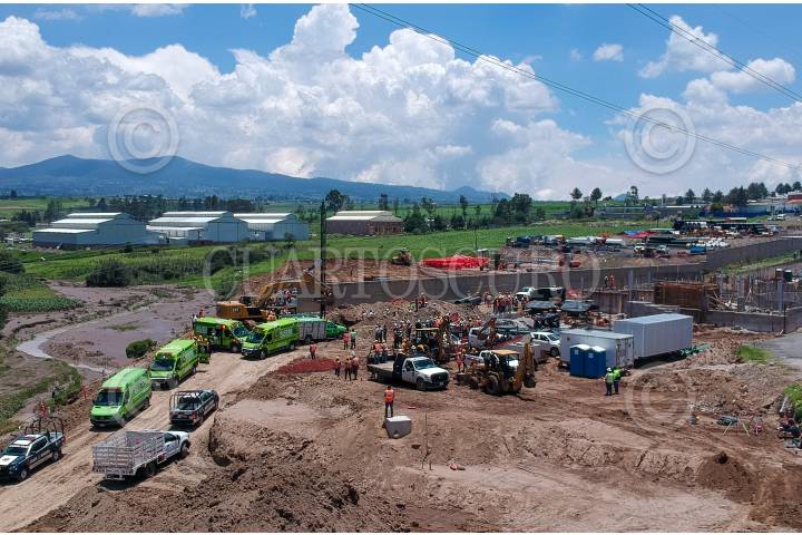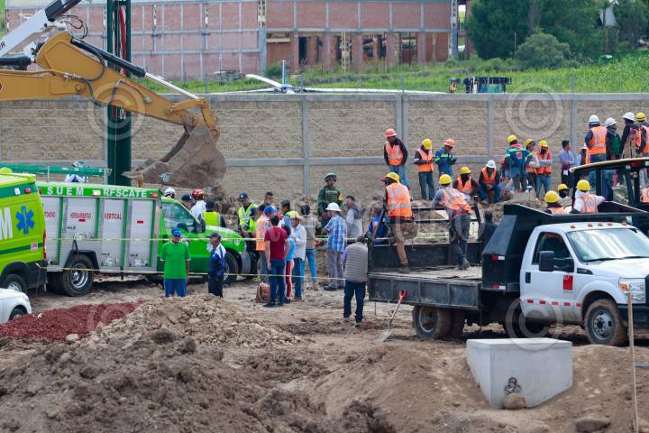 Tres personas mueren al registrarse el derrumbe de la obra de ampliación de la plaza de cobro La Hortaliza de la autopista Toluca-Zitácuaro, dos más fueron rescatados de entre los escombros.