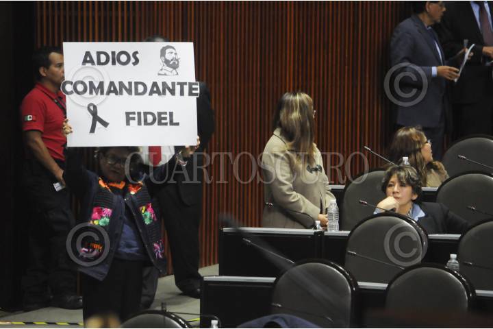 CIUDAD DE MÉXICO, 29NOVIEMBRE2016.- Margarita Cuata Domínguez, diputada de MORENA, mostró pancartas durante la sesión ordinaria en el Palacio Legislativo de San Lázaro. FOTO: DIEGO SIMÓN SÁNCHEZ /CUARTOSCURO.COM