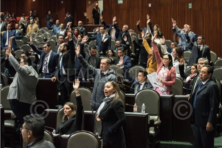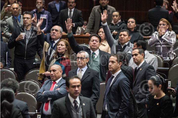CIUDAD DE MÉXICO, 15NOVIEMBRE2018.- Durante la sesión ordinaria en el Palacio Legislativo de San Lázaro, diputados de la bancada del Partí Acción Nacional (PAN) intentaron revocar el acta de la sesión ordinaria del pasado martes 13 de noviembre en la que se aprobaron modificaciones en la Ley Orgánica de Administrativo Pública. En la imagen, diputados de la bancada de Morena, votaron a favor para rectificar la aprobación de la sesión. FOTO: MARIO JASSO /CUARTOSCURO.COM