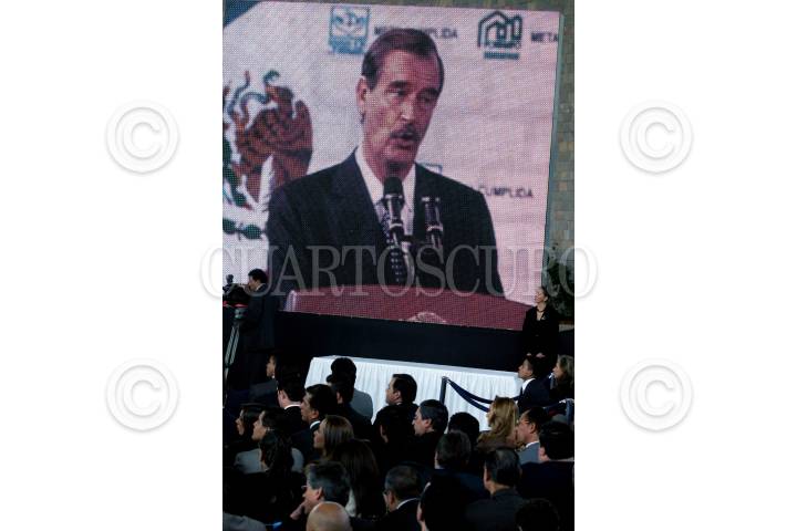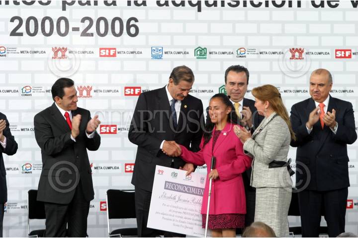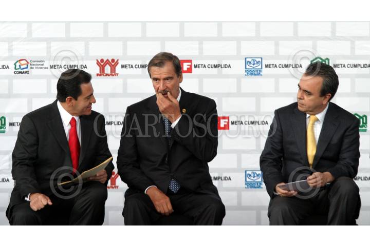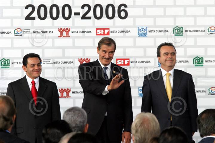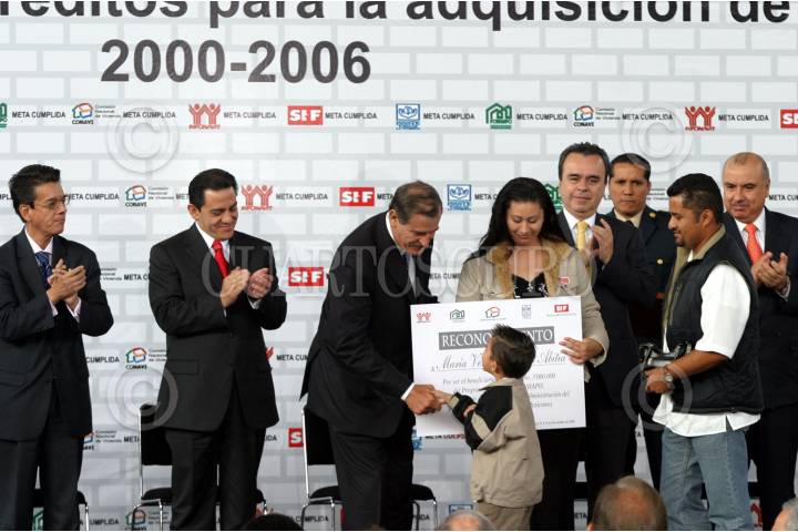 MÉXICO D.F. 08NOVIEMBRE2006.- El presidente Vicente Fox Quezada, acompañado de Carlos Gutíerrez Ruìz director de la comisión nacional de la vivienda y Victor Manuel Borras Setien director general de la vivienda para los trabajadores, realizo la entrega del credito para la vivienda no. 3,00,000, en el Museo Nacional de Antropología. FOTO: GUILLERMO PEREA/CUARTOSCURO.COM