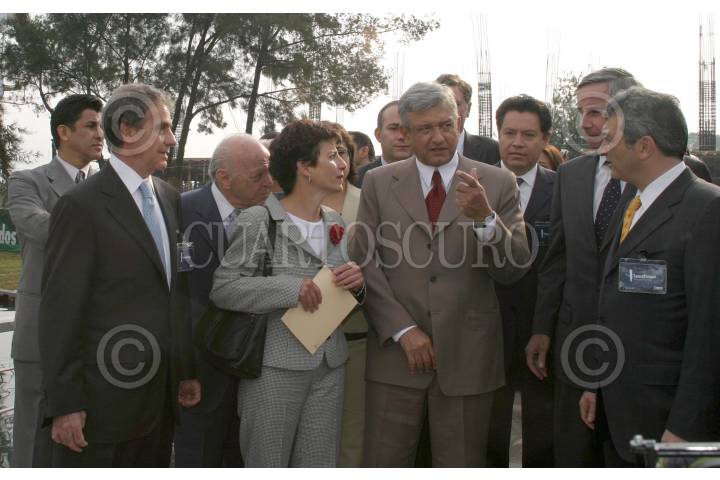 MEXICO, D.F. 11OCTUBRE2004.- Marcos Shabot, Jenny Saltien, Andrés Manuel López Obrador, jefe de gobierno del D. F. y Sandy Flockhart realizan un recorrido por el TecnoPaque, complejo industrial que inauguraron el Azcapotzalco. FOTO: Nelly Salas/CUARTOSCURO.COM