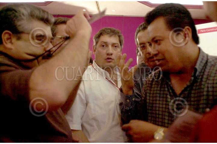 Jorge Shaffino muestra su gaffett, luego de que delegados discutieron sobre el acarreo de gente para "mayoritear" la asamblea. FOTO: Christian Palma/CUARTOSCURO.COM