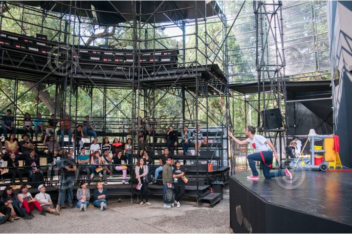 CIUDAD DE MÉXICO, 06ABRIL2018.- Función de la obra Romeo y Julieta de Bolsillo, que forma parte del evento "Shakespeare, Teatro en el Parque", una iniciativa cultural que se presentará en la explanada del Museo Tamayo durante abril y mayo. En dicho lugar se instaló un teatro que recrea las funciones del siglo XVI, ahí se presentarán 7 funciones de compañías mexicanas y serán de forma gratuita. FOTO: DIEGO SIMÓN SÁNCHEZ /CUARTOSCURO.COM