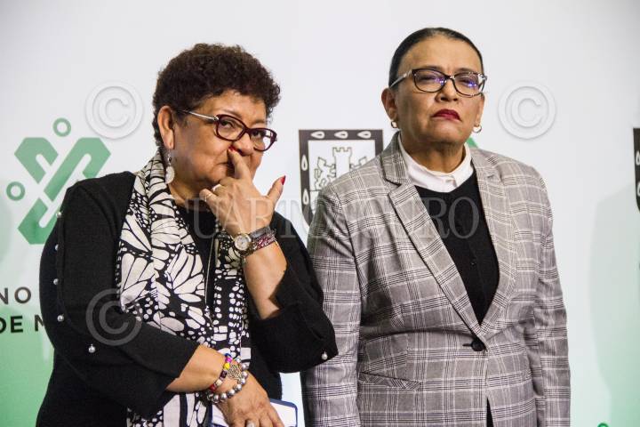 CIUDAD DE MÉXICO, 16ENERO2019.- Claudia Sheinbaum Pardo, jefa del Gobierno de la Ciudad, acompañada de la Fiscal Ernestina Godoy, Rosa Icela Rodríguez, secretaria de Gobierno y Jesús Orta, hablaron sobre una banda delictiva que se dedica a prestar dinero a comerciantes y posteriormente les cobran intereses altos y golpean a sus víctimas; Colombianos y Venezolanos integran de estas organizaciones delincuenciales. FOTO: VICTORIA VALTIERRA /CUARTOSCURO.COM