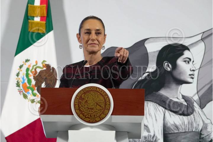 CIUDAD DE MÉXICO, 10OCTUBRE2024.- Claudia Sheinbaum, presidenta de México, durante la Conferencia Mañanera del Pueblo, esto desde el Salón Tesorería de Palacio Nacional. FOTO: ROGELIO MORALES /CUARTOSCURO.COM