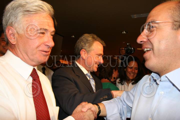 MÈXICO D.F. 06MARZO2006.- El candidato al gobierno del D.F. Demetrio Sodi, el panísta Santiago Creel y Felipe Calderon, candidato presidencial de Acción Nacional, durante la presentaciòn de la nueva campaña polìtica ha la presidencia. FOTO: Diego Gallegos/CUARTOSCURO.COM