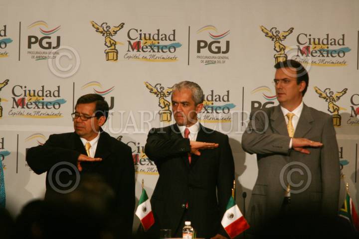 MÉXICO, D.F., 03OCTUBRE2008.- Marcelo Ebrard Jefe de Gobierno encabezo esta mañana la clausura del foro Internacional de Procuradores realizado en el hotel Sheraton del centro historico. FOTO: SÁSHENKA GUTIÉRREZ/ CUARTOSCURO.COM