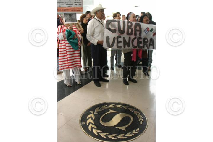 MEXICO, D.F. 07FEBRERO2006.- Un grupo personas clausuraron de forma simbólica el Hotel Sheraton Ciudad de México, en protesta por la expulsión de la delegación cubana. FOTO: Pedro Marrufo/CUARTOSCURO.COM