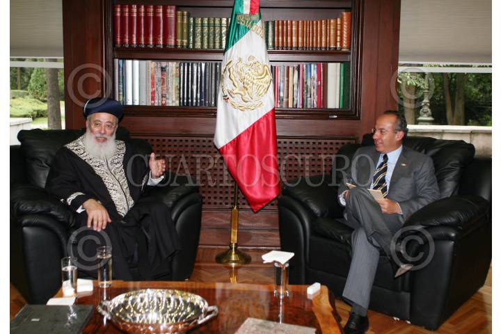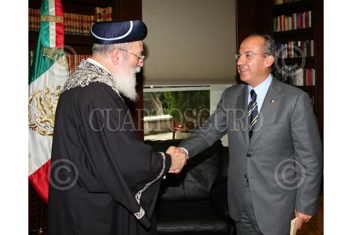 MÉXICO, D.F., 23/OCTUBRE/2007.- El presidente de México, Felipe Calderón Hinojosa, se reunió con el gran rabino de Isarael Shlomo Amar, en la residencia oficial de los pinos. FOTO: ALFREDO GUERRERO/CUARTOSCURO.COM