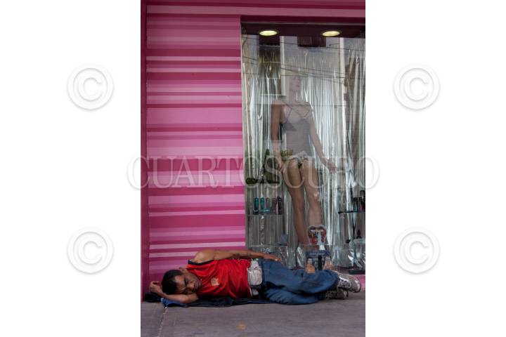 MÉXICO, D.F., 27MAYO2011.- Un hombre toma una siesta cerca de un aparador de una tienda Sex Shop en la colonia Roma. FOTO: MISAEL VALTIERRA/CUARTOSCURO.COM