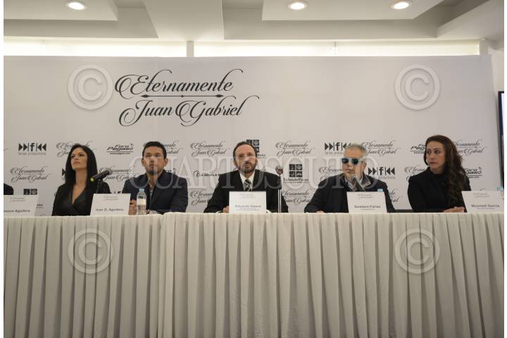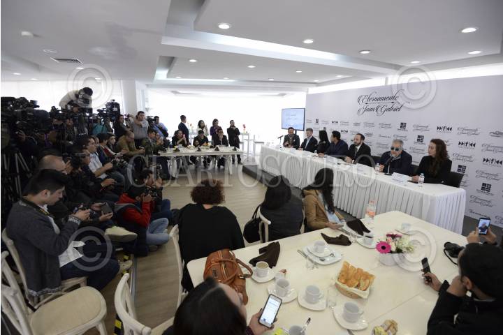 TOLUCA, ESTADO DE MÉXICO, 21DICIEMBRE2016.- Iván Aguilera, acompañado por Simona Aguilera, Gustavo Farías, Productor Musical y Eduardo Gasca Pliego, Secretario de Cultura del Estado de México, en conferencia de prensa anuncio se realizara el próximo 18 de febrero de 2017 un homenaje a su padre, el cantautor mexicano Juan Gabriel, en el Foro Pegaso, en la ciudad de Toluca. FOTO: PILAR AGUILAR / CUARTOSCURO.COM
