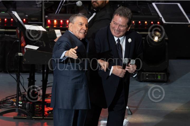 CIUDAD DE MÉXICO, 04JUNIO2025. Jorge Muñiz y su padre Marco Antonio Muñiz durante “La noche de Marco Antonio Muñiz, Tributo a la voz más importante del siglo”, en el Auditorio Nacional. FOTO: EDGAR NEGRETE LIRA/CUARTOSCURO.COM
