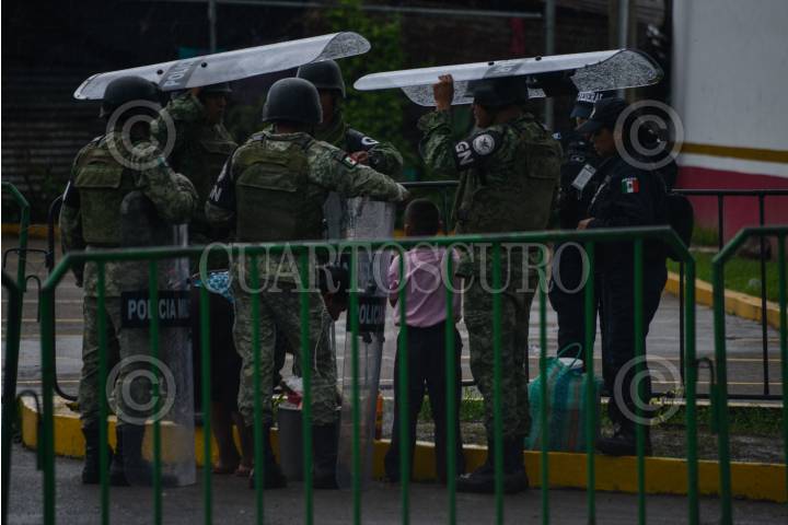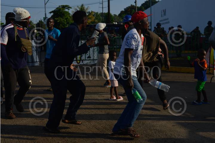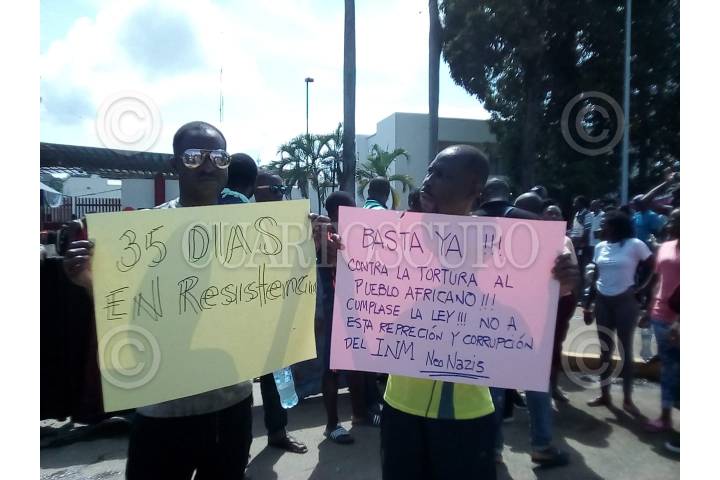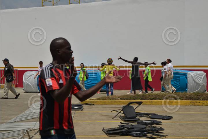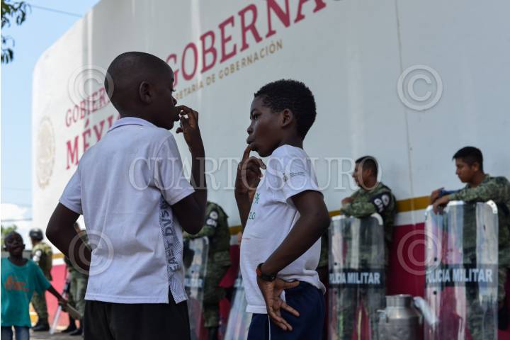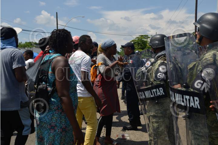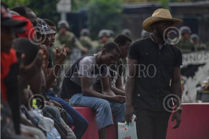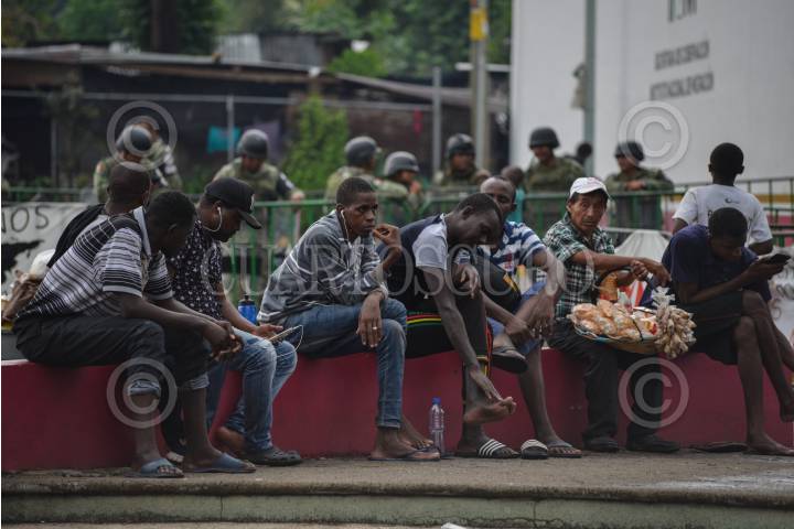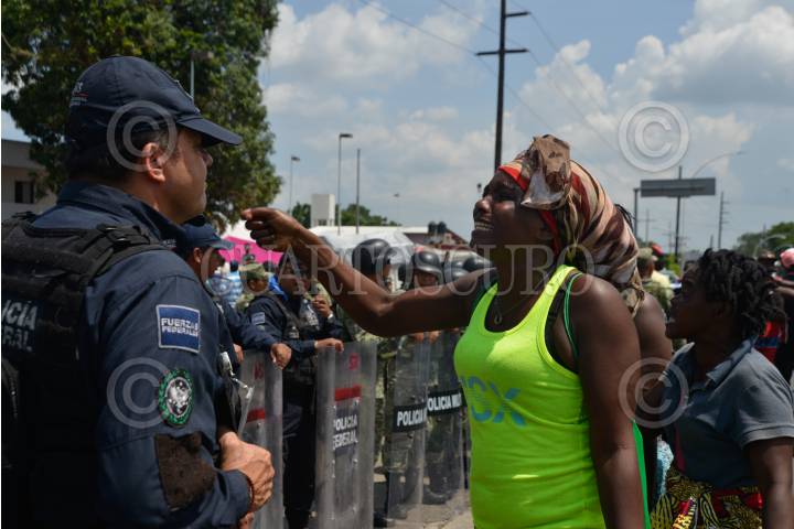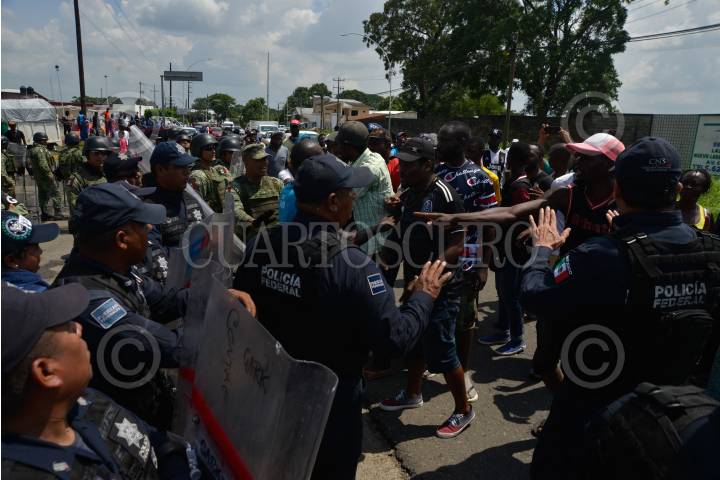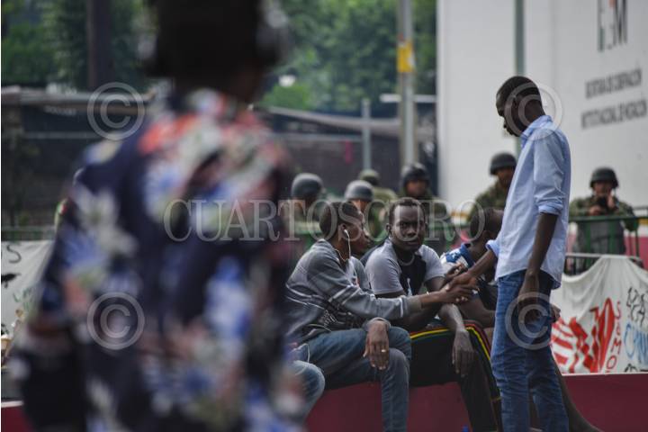 TAPACHULA, CHIAPAS, 03SEPTIEMBRE2019.- El Instituto Nacional de Migración instaló unas carpas para atender a la población africana que se encuentra en territorio mexicano, los procesos que han cumplido estos migrantes en diferentes instancias del gobierno han sido inútiles ya que no resuelven su situación migratoria y ellos continúan varados en este municipio, al enterarse de que la atención en estas nuevas mesas sería la misma que han recibido los últimos meses, los africanos decidieron no acudir a las mesas de atención y expresaron antes los policías y agentes migratorios su malestar y desesperación al no saber que va a pasar, ni ser atendidos en su idioma. FOTO: ISABEL MATEOS /CUARTOSCURO.COM