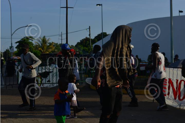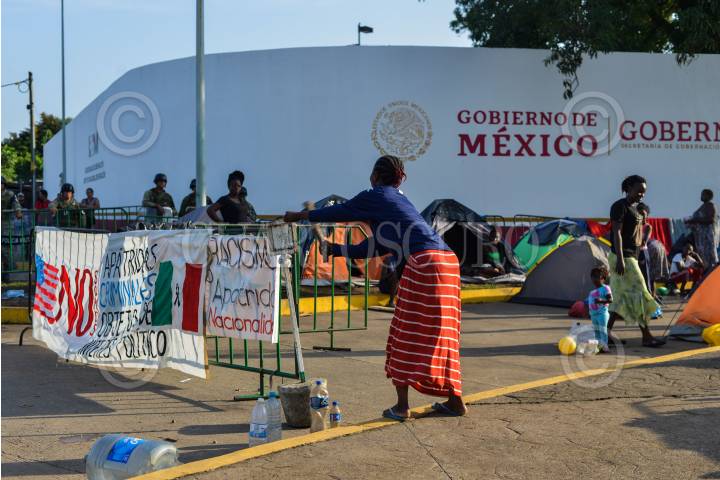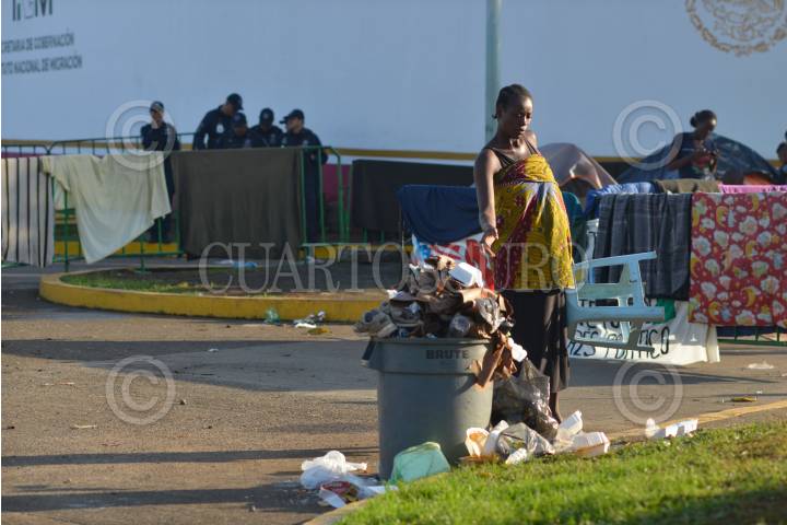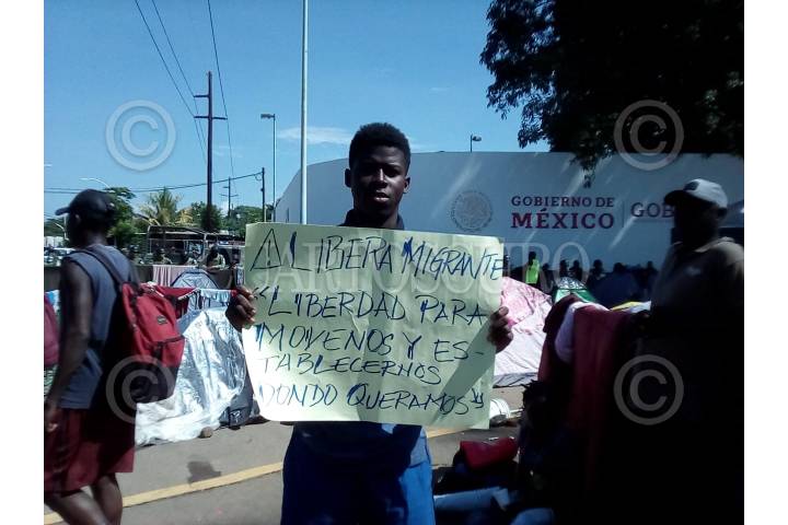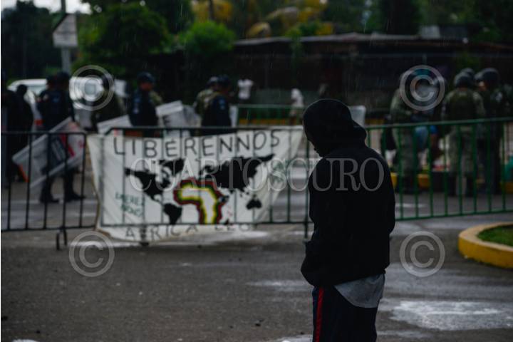 TAPACHULA, CHIAPAS, 04SEPTIEMBRE2019.- Las inmediaciones de la Estación Migratoria Siglo XXI, continuan albergando a cientos de africanos que solicitan libre transito por territorio mexicano, se han manifestado por el trato que se les ha dado en estas oficinas, les han expedido documentos con errores, tales como poner la fecha actual como su fecha de nacimiento, faltas de ortografía en sus nombres, esto ha provocado que pasen semanas dando sus datos personales, los procesos llevados a cabo de esta manera en el Instituto Nacional de Migración prolongan la permanencia de estos migrantes en Tapachula. Las autoridades migratorias en Mexico han cumplido los acuerdos con el gobierno Estadounidense y miles de migrantes se encuentran varados en el sur del país. FOTO: ISABEL MATEOS /CUARTOSCURO.COM