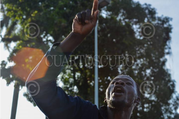 TAPACHULA, CHIAPAS, 20SEPTIEMBRE2019.- Migrantes africanos provenientes de Guinea, Angola, Camerún, Republica del Congo, Malí, Etiopia, Gana, Senegal, Sierra Leona, Eritrea, entre otros, que permanecen varados en esta cuidad, realizaron otra marcha pacifica para exigirle respuestas al estado mexicanos sobre su situación migratoria y se respeten sus derechos. FOTO: ESPECIAL /CUARTOSCURO.COM