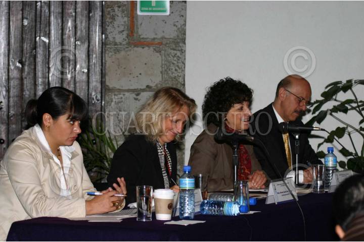 MÉXICO, D.F., 08SEPTIEMBRE2011.- Jacqueline Peschard, comisionada presidenta del IFAI, con los comisionados Sigrid Arzt, Ángel Trinidad y María Elena Pérez-Jaén durante el desarrollo del segundo día de trabajo de la VIII Semana Nacional de Transparencia “Estado Fuerte, Estado Transparente” que se desarrolla en el Palacio de Minería. FOTO: IFAI/CUARTOSCURO.COM