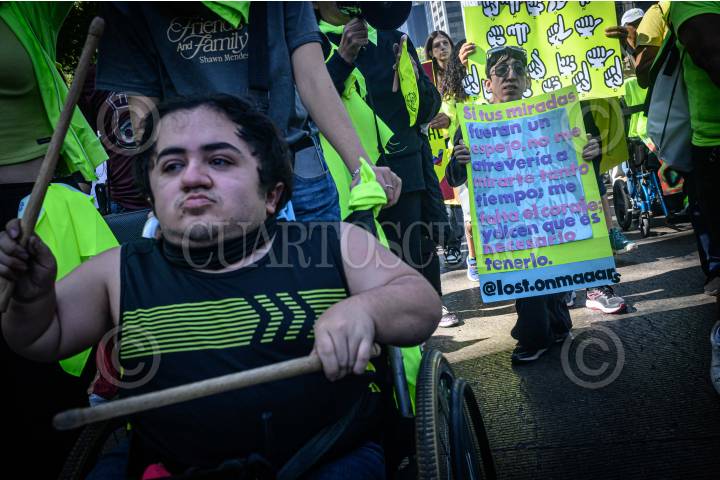 CIUDAD DE MÉXICO, 24AGOSTO2025.- Aspectos de la rodada por el día “Vive Independiente”, realizada por personas en silla de ruedas desde el Auditorio Nacional hasta el Monumento a la Revolución. FOTO: MOISÉS PABLO / CUARTOSCURO.COM