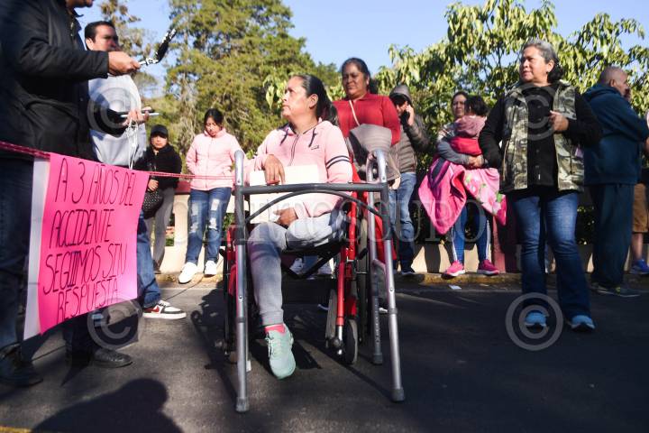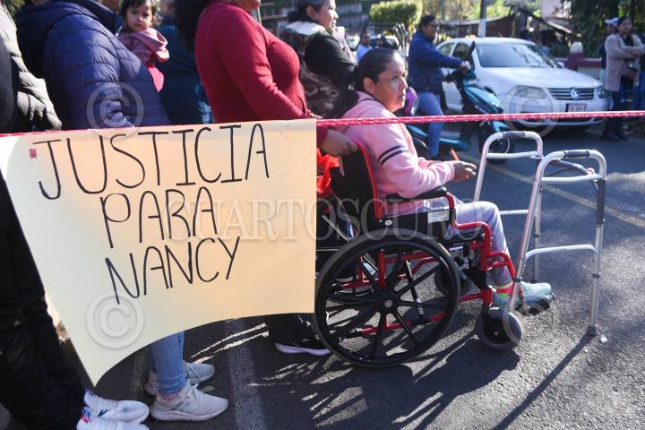 NAOLINCO, VERACRUZ, 03MARZO2025.- Nancy fue atropellada por un trailer en 2022, el cual según se quedo sin frenos, en este siniestro murieron tres personas. Aunque ella sobrevivió quedo con graves heridas que la mantienen en silla de ruedas. El día de hoy junto con familiares un tráiler se manifestaron para denunciar a la dueña de la empresa responsable del transporte de carga pesada que no ha asumido su responsabilidad y la Fiscalía de Veracruz ha ignorado el caso. FOTO: YERANIA ROLÓN/CUARTOSCURO.COM