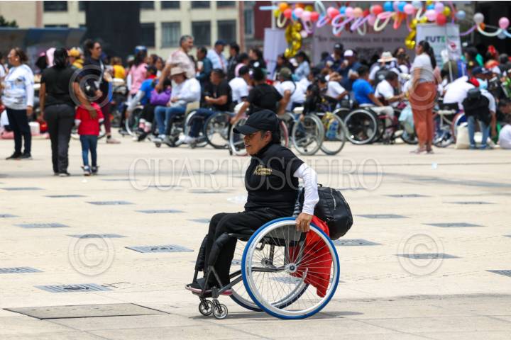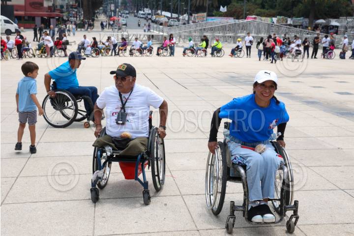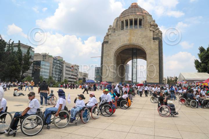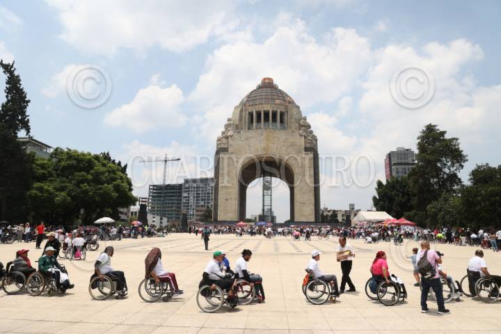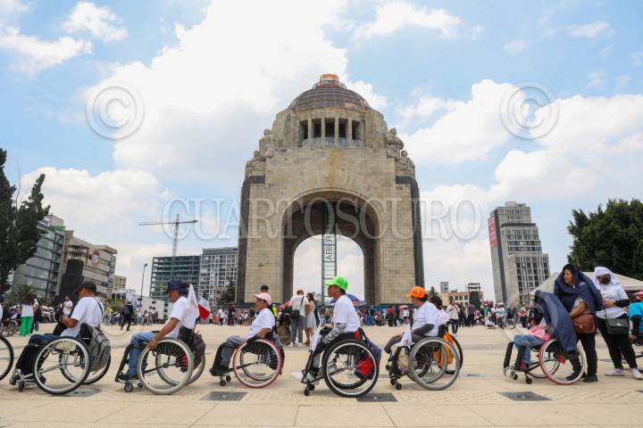 CIUDAD DE MÉXICO, 24AGOSTO2025.- Personas en silla de ruedas se concentraron en la explanada del Monumento a la Revolución para conmemorar el día “Vive Independiente”, convocado por Vida Independiente México y la Fundación Mexicana de Integración Social. Los asistentes realizaron una rodada que partió del Auditorio Nacional, con el objetivo de celebrar la autonomía, la inclusión y los derechos de las personas con discapacidad. En el Monumento, fueron recibidos con chilaquiles y bebidas ofrecidos por las organizaciones convocantes y el gobierno capitalino. FOTO: MOISÉS PABLO / CUARTOSCURO.COM