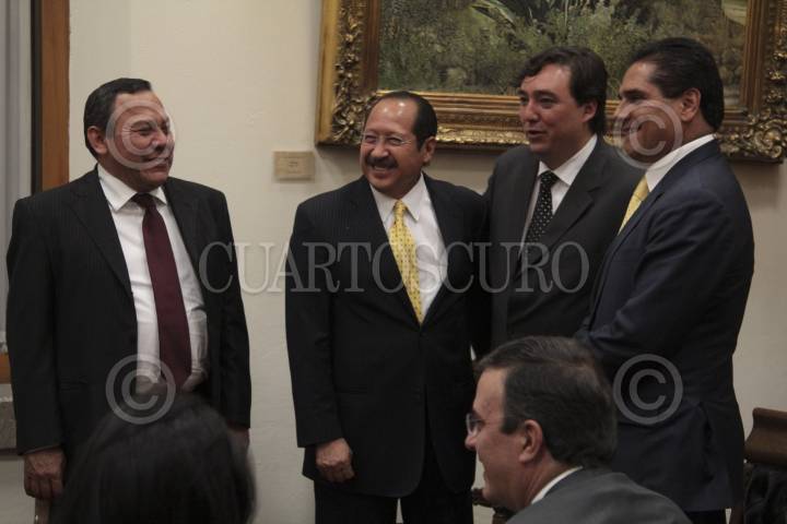MÉXICO D.F., 25OCTUBRE2011.- Jesus Zambrano, lider del PRD junto a Leonel Godoy, gobernador de Michoacana y Silvano Aureoles, candidato a la gubernatura de Michoacan durante la reunion que mantuvieron antes de entregarle la medalla Amalia Solorzano a Luiz Ignacio Lula, ex presidente de Colombia. FOTO: ENRIQUE ORDÓÑEZ/CUARTOSCURO.COM