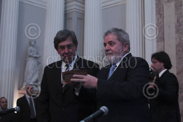 MÉXICO D.F., 25OCTUBRE2011.- Luiz Ignacio Lula, ex presidente de Colombia durante la ceremonia donde Cuauhtemoc Cardenas le entrego la medalla amalia Solorzano en el Palacio de Mineria FOTO: ENRIQUE ORDÓÑEZ/CUARTOSCURO.COM
