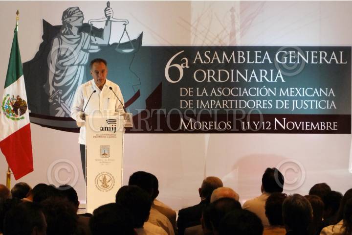 CUERNAVACA, MORELOS, 11NOVIEMBRE2011.- Sexta Asamblea General Ordinaria de la Asociación Mexicana de Impartidores de Justicia; evento al cual el Secretario de Gobernación, José Francisco Blake Mora, no llego porque falleció cuando el helicóptero en el que viajaba cayó en un poblado de Chalco, Estado de México. En la imagen, Marco Adame, Gobernador de Morelos. FOTO: ESPECIAL/CUARTOSCURO.COM