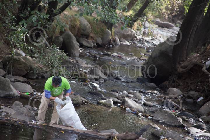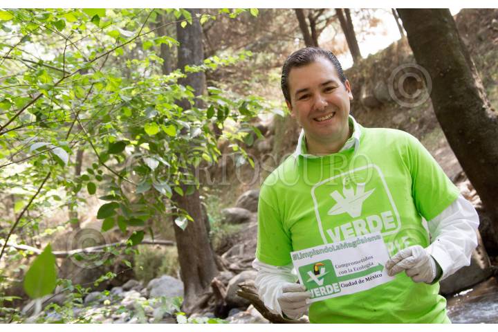 CIUDAD DE MÉXICO, 06ABRIL2016.- Carlos Madrazo Silva, Secretario General del Partido Verde Ecologista de México (PVEM) y Fernando Mercado, Jefe Delegacional de Magdalena Contreras, encabezaron una limpieza intensiva en el Río Magdalena, único río vivo en la Ciudad de México. Durante la jornada, brigadas retiraron botellas de todo tipo, plásticos, llantas, entre otros objetos que contaminaban el río que aporta alrededor del 30 por ciento del agua que se consume en la capital. FOTO: TERCERO DÍAZ /CUARTOSCURO.COM