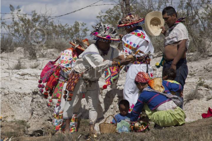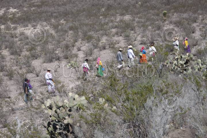 WIRIKUTA, SAN LUIS POTOSÍ, 19MARZO2012.- Los wixaricas creen que en Wirikuta salió por vez primera el sol y habitan las deidades y espíritus ancestrales, por tanto, consideran que cada elemento natural que habita en Wirikuta es igualmente sagrado. Uno de los ritos más sagrados es la peregrinación a Wirikuta. Entre los meses de octubre y marzo, se recrea el caminar de los deidades desde el mar en Haramara (diosa del mar), al este, hasta el lugar en donde salió el sol (Reunax), el actual Cerro Quemado (Leunaxü). FOTO: IVÁN STEPHENS /CUARTOSCURO.COM