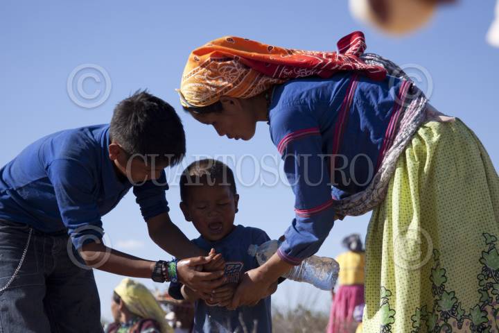 WIRIKUTA, SAN LUIS POTOSÍ, 20MARZO2012.- Wirikuta es, dentro de la cosmogonía de los indígenas wixarrica (huicholes), uno de los sitios más sagrados de su cultura. Se ubica en un espacio de aproximadamente 14 mil hectáreas de San Luis Potosí, en los municipios de Catorce, Charcas, Matehuala, Villa de Guadalupe, Villa de La Paz y Villa de Ramos. El sitio es sagrado para los wixarricas ya que la creación del mundo ocurrió en dicho sitio según sus creencias. Es desde 1998 parte de la Red Mundial de Sitios Sagrados Naturales de la UNESCO. A pesar de ello, la Secretaría de Economía otorgó 22 concesiones mineras a la empresa canadiense First Majestic Silver para la explotación de plata en Wirikuta. La compañía construirá en ese territorio una carretera para sacar su producción. El proyecto tendrá consecuencias devastadoras para el pueblo wixárika y para el medio ambiente. Los permisos de operación provocarán la contaminación de los ríos, el acuífero, la tierra y el aire. FOTO: IVÁN STEPHENS /CUARTOSCURO.COM