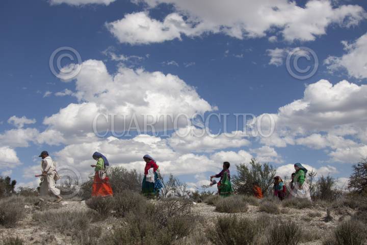 WIRIKUTA, SAN LUIS POTOSÍ, 20MARZO2012.- Wirikuta es, dentro de la cosmogonía de los indígenas wixarrica (huicholes), uno de los sitios más sagrados de su cultura. Se ubica en un espacio de aproximadamente 14 mil hectáreas de San Luis Potosí, en los municipios de Catorce, Charcas, Matehuala, Villa de Guadalupe, Villa de La Paz y Villa de Ramos. El sitio es sagrado para los wixarricas ya que la creación del mundo ocurrió en dicho sitio según sus creencias. Es desde 1998 parte de la Red Mundial de Sitios Sagrados Naturales de la UNESCO. A pesar de ello, la Secretaría de Economía otorgó 22 concesiones mineras a la empresa canadiense First Majestic Silver para la explotación de plata en Wirikuta. La compañía construirá en ese territorio una carretera para sacar su producción. El proyecto tendrá consecuencias devastadoras para el pueblo wixárika y para el medio ambiente. Los permisos de operación provocarán la contaminación de los ríos, el acuífero, la tierra y el aire. FOTO: PEDRO ANZA /CUARTOSCURO.COM