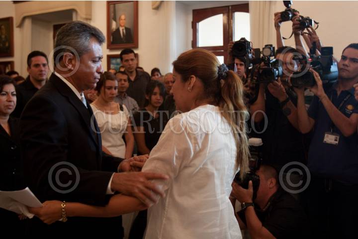 COLIMA, COLIMA, 22NOVIEMBRE2010.- Idalia González Pinentel viuda de Cavazos y Mario Anguiano, durante la guardia de honor en el homenaje de cuerpo presente que recibió el ex mandatario Silverio Cavazos Ceballos (1968-2010) en el Palacio de Gobierno. El ex gobernador fue asesinado el día de ayer de tres disparos de arma de fuego frente a su casa. FOTO: MISAEL VALTIERRA/CUARTOSCURO.COM