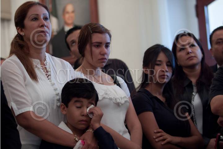 COLIMA, COLIMA, 22NOVIEMBRE2010.- Idalia González Pimentel, viuda de Cavazos y las hijas del ex mandatario Silverio Cavazos Ceballos (1968-2010) durante el homenaje de cuerpo presente realizado en el Palacio de Gobierno. El ex gobernador fue asesinado el día de ayer de tres disparos de arma de fuego frente a su casa. FOTO: MISAEL VALTIERRA/CUARTOSCURO.COM