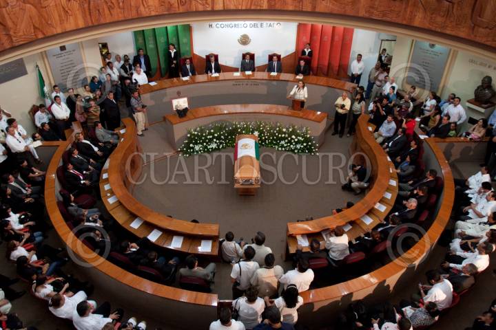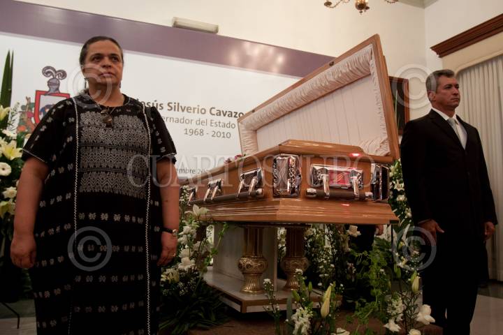 COLIMA, COLIMA, 22NOVIEMBRE2010.- En las instalaciones del Congreso del Estado de Colima, el cuerpo del ex mandatario Silverio Cavazos Ceballos (1968-2010) recibió un homenaje de cuerpo presente. El ex gobernador fue asesinado el día de ayer de tres disparos de arma de fuego a las afueras de su casa. FOTO: MISAEL VALTIERRA/CUARTOSCURO.COM