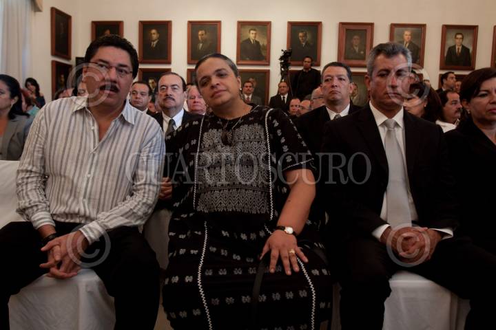 COLIMA, COLIMA, 22NOVIEMBRE2010.- Ulises Ruíz, gobernador de Oaxaca; Beatriz Paredes Rangel, presidenta del Partido Revolucionario Institucional (PRI); y Mario Anguiano, gobernador del estado; durante el homenaje de cuerpo presente que recibió el ex mandatario Silverio Cavazos Ceballos (1968-2010) en el Palacio de Gobierno de esta ciudad. El ex gobernador fue asesinado el día de ayer de tres disparos de arma de fuego frente a su casa. FOTO: MISAEL VALTIERRA/CUARTOSCURO.COM
