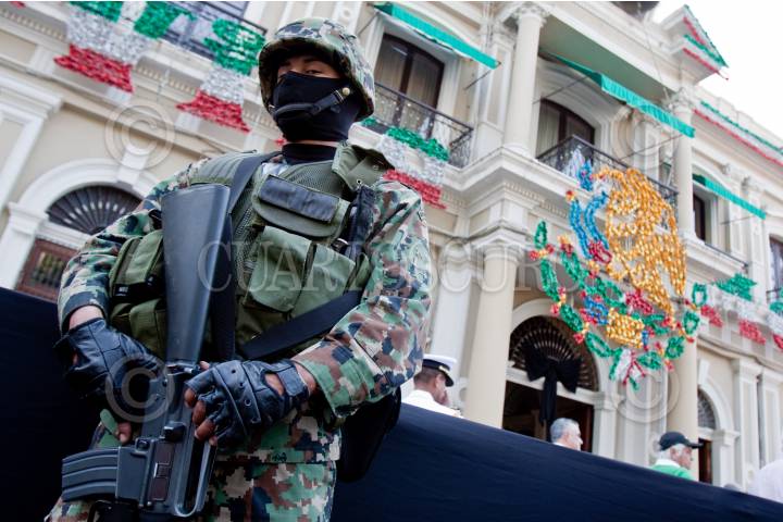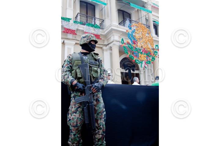 COLIMA, COLIMA, 22NOVIEMBRE2010.- El Ejército Mexicano y la Marina montó un fuerte cerco de seguridad al rededor del Palacio de Gobierno donde se realizó un homenaje de cuerpo presente al ex mandatario Silverio Cavazos Ceballos (1968-2010). El ex gobernador fue asesinado el día de ayer de tres disparos de arma de fuego a frente a su casa. FOTO: MISAEL VALTIERRA/CUARTOSCURO.COM