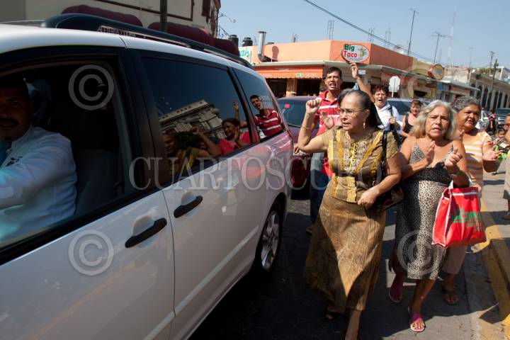 COLIMA, COLIMA, 22NOVIEMBRE2010.- Habitantes de esta ciudad realizaron un recorrido tras la carroza donde fue trasladado al Congreso del Estado el cuerpo del ex mandatario Silverio Cavazos Ceballos (1968-2010) donde se le rindió un homenaje. El ex gobernador fue asesinado el día de ayer de tres disparos de arma de fuego a las afueras de su casa. FOTO: MISAEL VALTIERRA/CUARTOSCURO.COM