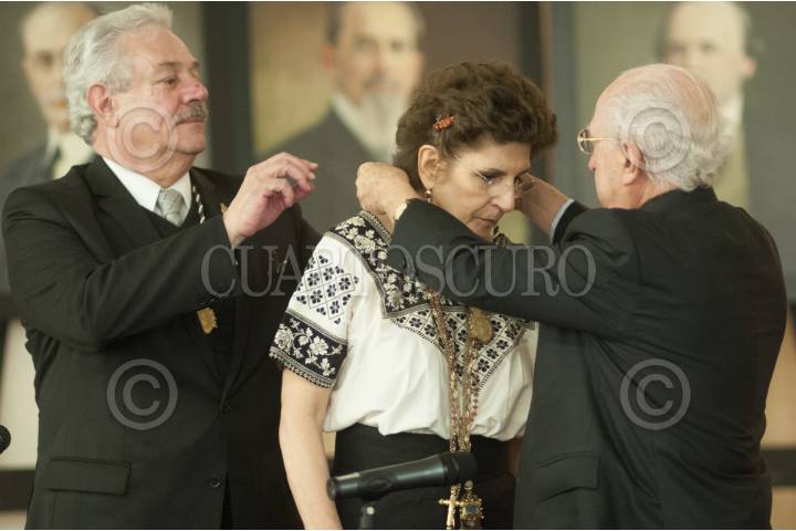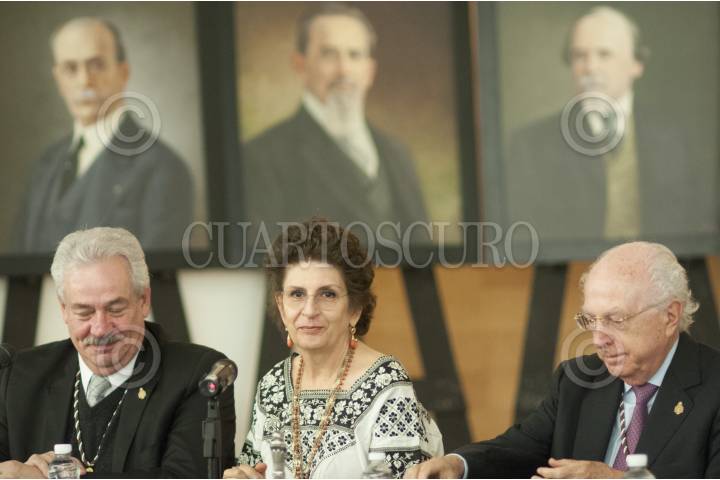 MÉXICO, D.F., 26JUNIO2014.- Gonzalo Celorio, Silvia Molina, y Jaime Labastida, durante la ceremonia de ingreso de la escritora oriunda de la capital del país Silvia Molina, a la Academia Mexicana de la Lengua FOTO: IVÁN STEPHENS /CUARTOSCURO.COM