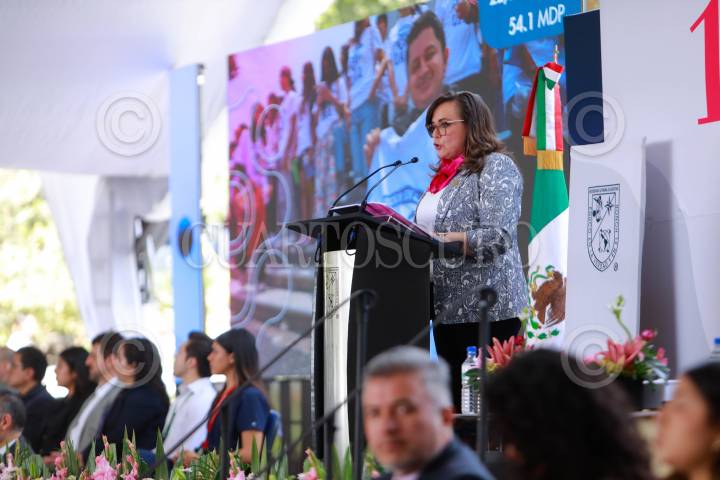 QUERÉTARO, QUERÉTARO, 20FEBRERO2025.- En la explanada de Rectoría, Silvia Amaya Llano rindió su primer informe de actividades al frente de la Universidad Autónoma de Querétaro. Ante la comunidad universitaria, conformada por estudiantes, docentes y personal administrativo, así como alcaldes y representantes del poder judicial y ejecutivo, la rectora expuso los principales avances de su administración y los desafíos que enfrenta la institución. FOTO: CÉSAR GÓMEZ/CUARTOCURO.COM