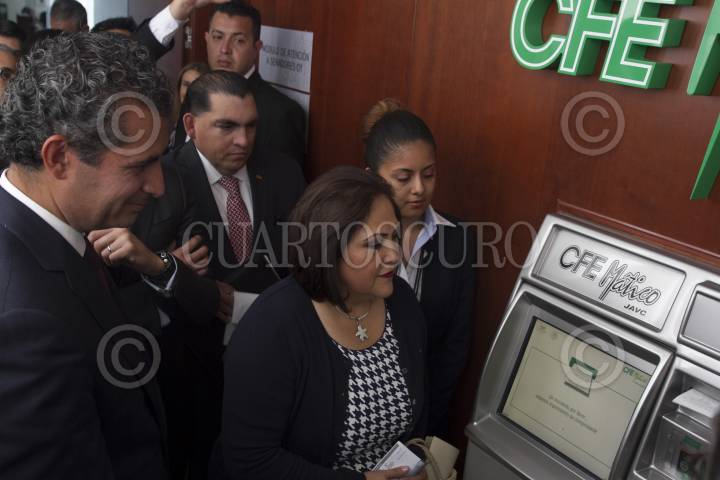 CIUDAD DE MÉXICO, 26ABRIL2016.- Enrique Ochoa Reza, director de la Comisión Federal de Electricidad, y la senadora Silvia Guadalupe Garza Galván, pusieron en marcha un CFE Matico para pagar el recibo de electricidad en la Cámara Alta. FOTO: MOISÉS PABLO /CUARTOSCURO.COM