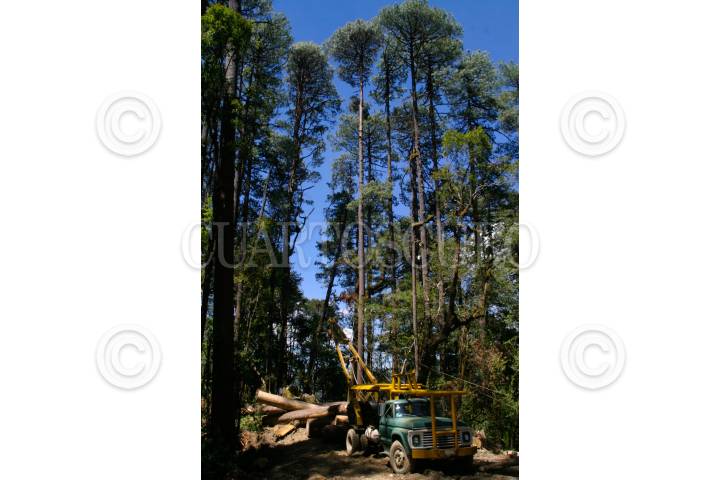 LA TRINIDAD, OAXACA, 07MARZO2008.- Aprovechadores forestales trabajan en la extracción de madera en la comunidad de la Trinidad, lugar donde solo se puede derribar árboles autorizados y adecuados para tala que no afectan los bosques de la entidad, esto ante un decreto oficial que solo autoriza la explotación de uso forestal para el bien de las comunidades, y no permite la utilización de recursos forestales para el interés de la industria privada. FOTO: SAÚL LÓPEZ ESCORCIA/CUARTOSCURO.COM
