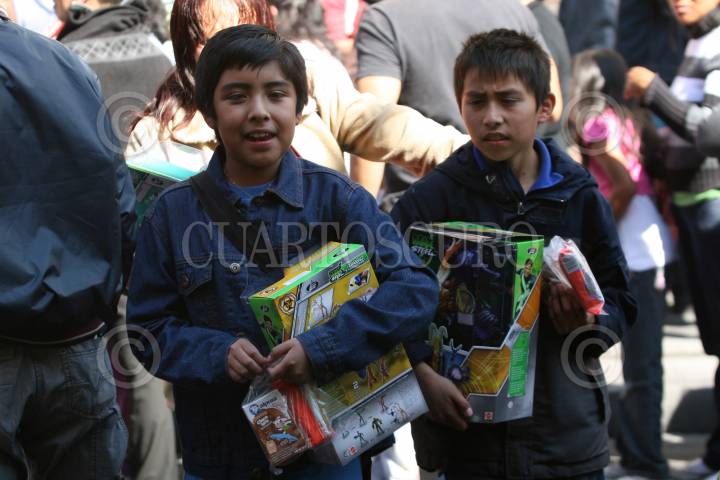 MÉXICO D.F., 06ENERO2011.- Integrantes de la Unión de Empleados de Restaurantes, Cantinas Hoteles y Similares, recibieron juguetes para sus hijos por la celebración del Día de Reyes, esto en instalaciones de esta asociación. FOTO: GUILLERMO PEREA/CUARTOSCURO.COM