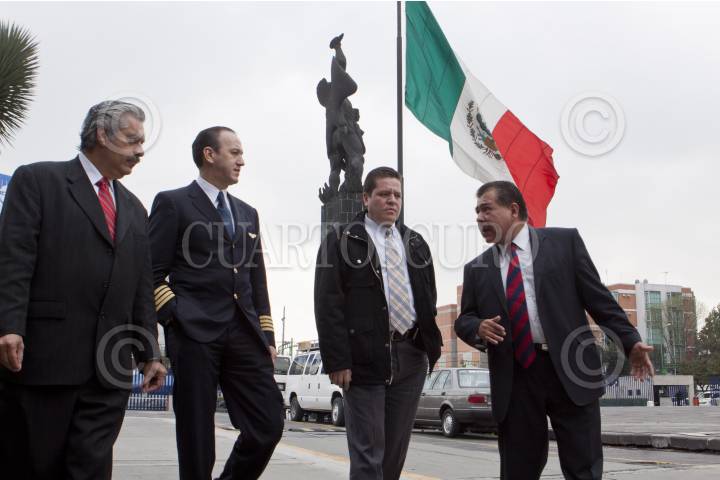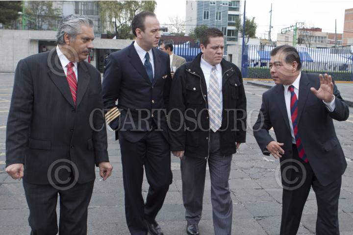 MÉXICO, D.F., 10NOVIEMBRE2011.- Miguel Ángel Yúdico, secretario general del Sindicato Nacional de Trabajadores de Transportes, Transformación, Aviación, Servicios y Similares (SNTTTASS); Fernando Perfecto, secretario general de la Asociación Sindical de Pilotos de Aviación (ASPA); Ricardo del Valle, lider de la Asociación Sindical de Sobrecargos de Aviación (ASSA) y el diputado Mario Di Constanzo a su llegada a la Secretaria de Comunicaciones y Transportes en donde sostuvo una reunión con el titular de la dependencia sobre el tema del rescate de Mexicana de Aviación. FOTO: RODOLFO ANGULO/CUARTOSCURO.COM