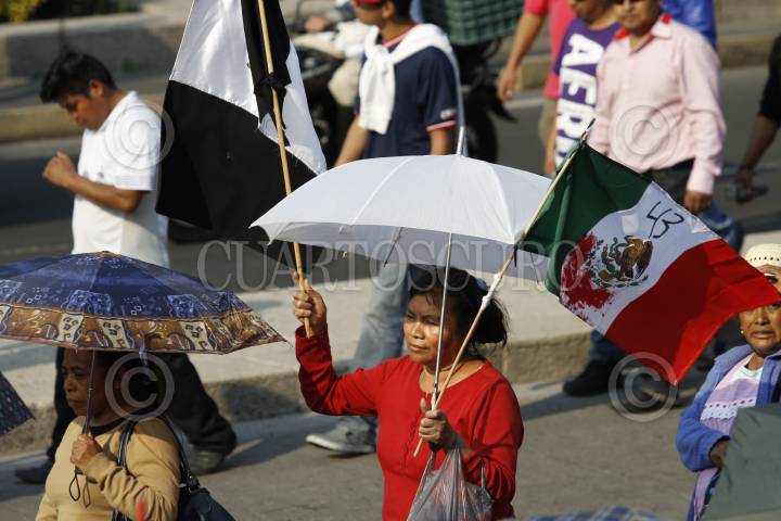 MÉXICO, D.F., 25FEBRERO2015.- Integrantes de la Union Popular de Vendedores Ambuelantes 28 de Octubre se manifestaron sobre Insurgentes a la altura del Senado de la República exigiendo la liberación de Rubén Sarabia Sánchez "Simitrio" y la aparición con vida de los normalistas de Ayotzinapa. FOTO: ENRIQUE ORDÓÑEZ /CUARTOSCURO.COM