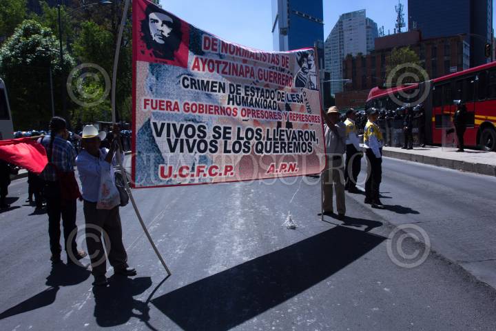 MÉXICO, D.F., 25FEBRERO2015.- Integrantes de la Unión Popular de Vendedores Ambulantes 28 de Octubre se manifestaron sobre Insurgentes a la altura del Senado de la República exigiendo la liberación de Rubén Sarabia Sánchez "Simitrio" y la aparición con vida de los normalistas de Ayotzinapa. FOTO: ENRIQUE ORDÓÑEZ /CUARTOSCURO.COM