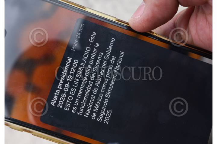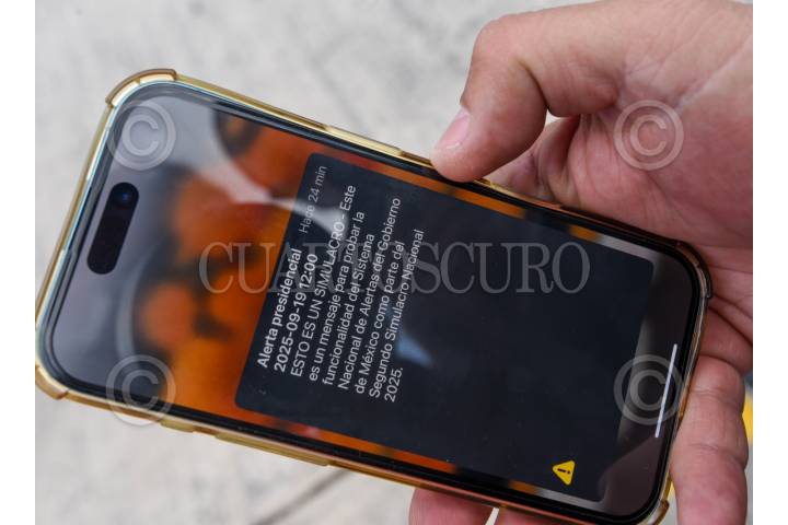 TOLUCA, ESTADO DE MÉXIXO, 19SEPTIEMBRE2025.- Como parte del protocolo del Segundo Simulacro Nacional 2025 teléfonos celulares recibieron una alerta, para probar la funcionalidad del Sistema Nacional de Alertas del Gobierno de México. FOTO: CRISANTA ESPINOSA AGUILAR/CUARTOSCURO.COM
