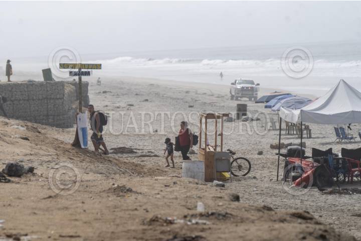 TIJUANA BAJA CALIFORNIA 19SEPTIEMBRE2025.-Gente saliendo de la Playa durante el simulacro de Tsunami. Por primera vez se realizó un simulacro de tsunami en Playas de Tijuana, con la participación de 100 personas, así como elementos de Bomberos y Protección Civil Municipal. El ejercicio incluyó el cierre de vialidades desde el Faro y simuló un tsunami de magnitud 9.5 con epicentro en Hawái, lo que daría un margen de 30 minutos para evacuar. Personal de Protección Civil brindó información preventiva a los asistentes, en el marco de la conmemoración por los 40 años del sismo de 1985. FOTO OMAR MARTÍNEZ / CUARTOSCURO.COM