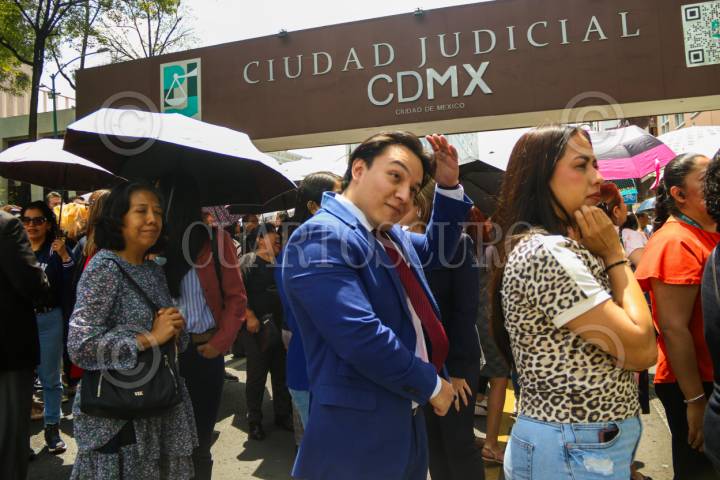 CIUDAD DE MÉXICO. 19SEPTIEMBRE2025.- Trabajadores del poder judicial de la Ciudad de México; en el Simulacro nacional de sismo este día y que se llevó acabó en los tribunales. FOTO: VICTORIA VALTIERRA/CUARTOSCURO.COM