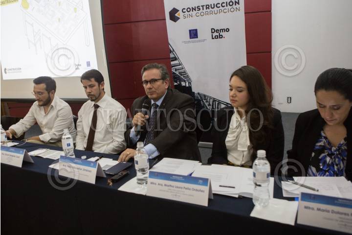 CIUDAD DE MÉXICO, 11AGOSTO2017.- Luis Fernández, director ejecutivo de Nosotrxs, Óscar Sanginés, vicepresidente de Asuntos Gerenciales, Felx Villaseñor, presidente del Colegio de Arquitectos, Martha Peña, directora ejecutiva de Laboratorio Democrático, y María Franco, presidente del Colegio de Urbanistas de México, presentaron la campaá #ConstrucciónSinCorrupción. FOTO: TERCERO DÍAZ /CUARTOSCURO.COM